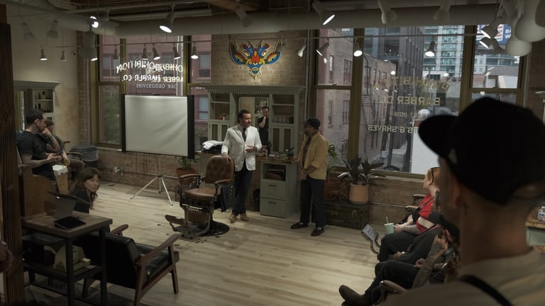 Com este workshop presencial, eu, John, você e outros barbeiros vamos ficar juntos por dois turnos, começando pela manhã e finalizando à noite.